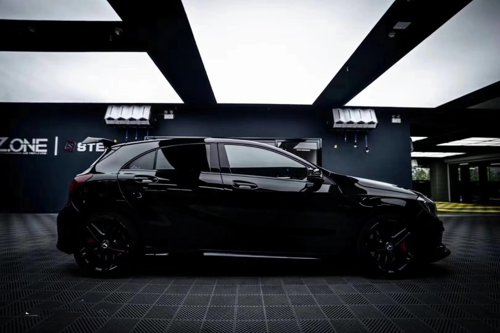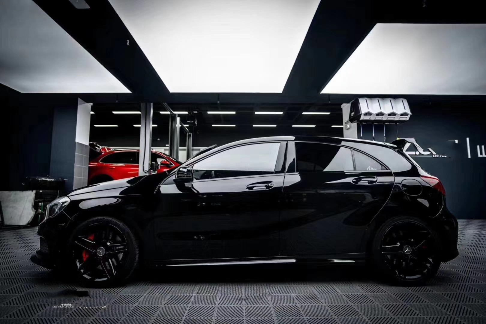 奔驰A45 AMG全车换色钢琴黑,车面有如焕然一新,简直光可照人,一下子气质指数就飙升。钢琴黑质感更是起到点睛之笔的作用,体现出车身细节处颇高的精致工艺水平。浓郁又深沉的黑色奠定了整台车体的不羁风格,为奔驰注入鲜明的个性特点,表达车主本身处变不惊的出行态度,为生活塑造高级感的时尚范儿。