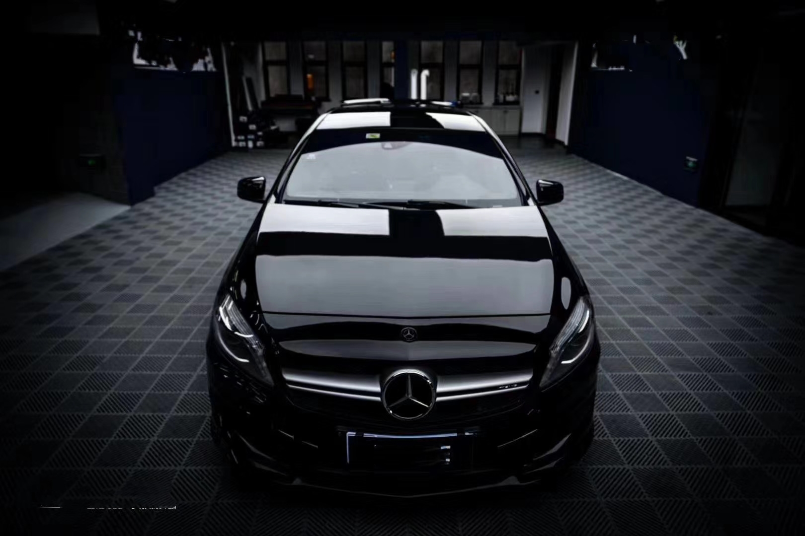 改色钢琴黑的CLA45 AMG质感非常强,不同的亮度呈现了不一样的颜色,亮面的地方无比耀眼,而暗面的又有一种神秘感。这是改色贴膜钢琴黑后的奔驰,从质感上看并不亚于原车漆,车身非常的亮。黑色简单,纯粹,潮流却不随意。