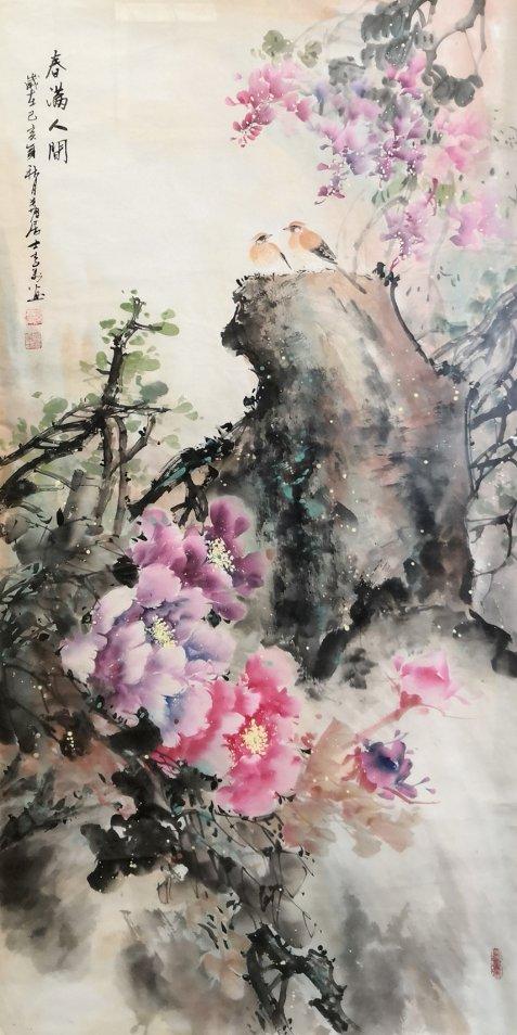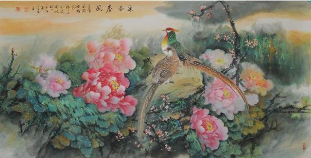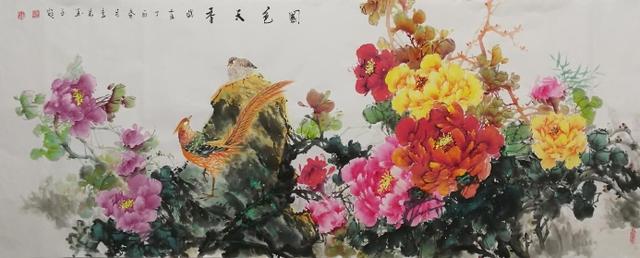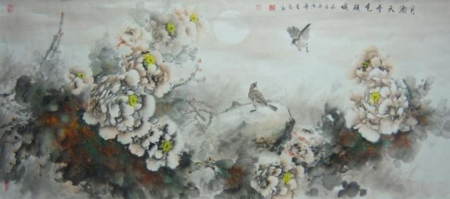 他的牡丹画善用色彩,充分展示色彩的震撼力与感染力,鲜而不俗,艳而不腻,丰富生动,与当代社会及国际审美观相一致,其大幅牡丹画融合山水、人物于一图,并把环境气氛融绘于画中使人如临其境、感人深思。他的牡丹画在东南亚地区及日本等地参加国际书画大展时得到高度平价,当地画界朋友都称赞他为“南国牡丹王”,广西省文联主席蓝怀昌先生书还书写了“南国牡丹王”的墨宝赠给他。