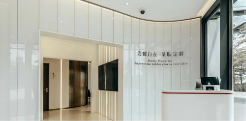 整个会场高端、清新又极具透亮通明的氛围,与曜目美肌的主题相互成就。入口签到后设有互动拍照装置,现场来宾可在装置前写上自己的名字作为一个TAG,并进入互动拍照装置进行拍摄,现代感十足。产品展示区也是很符合城野医生风格的实验室装置,与会嘉宾可以尽情感受品牌与产品的魅力。