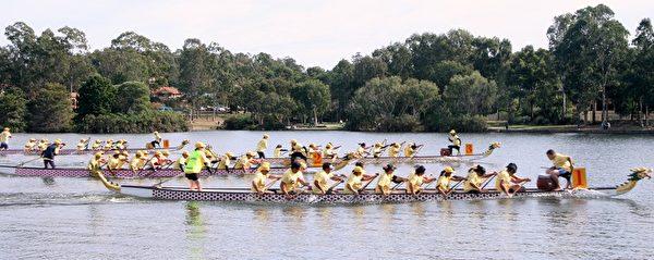 *共骇群龙水上游,不知元是木兰舟。云旗猎猎翻青汉,雷鼓嘈嘈殷碧流。