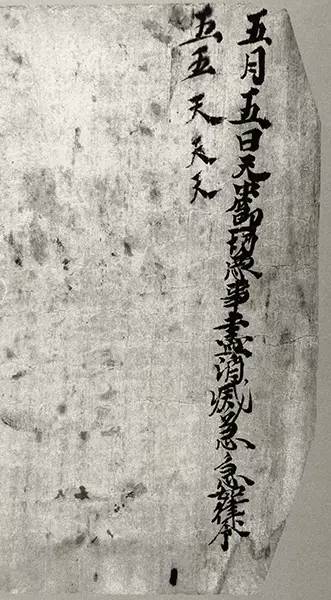 S.0799卷记载了一则端午符咒:“五月五日天中节,一切恶事尽消灭。急急如律令!”命令一切恶事速速离去。此外,为祈福、祛疫、保平安而佩带香包、丝节彩带的习俗也一直延续至今。
