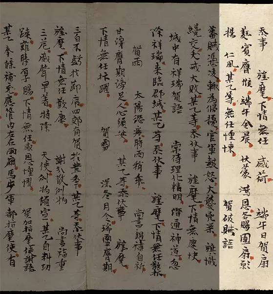S.5636卷《端午相迎书》:“幸逢嘉节,端午良辰。有慰同僚,何以申展,空备团粽,辄敢谘邀,状至幸垂过访。谨状。”