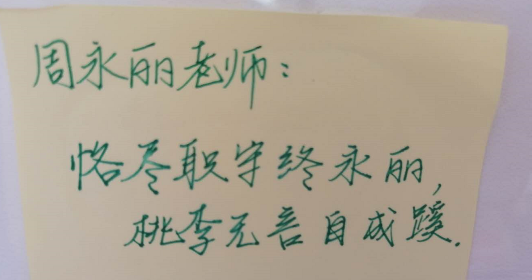 “周永丽老师:恪尽职守终永丽,桃李无言自成蹊。”