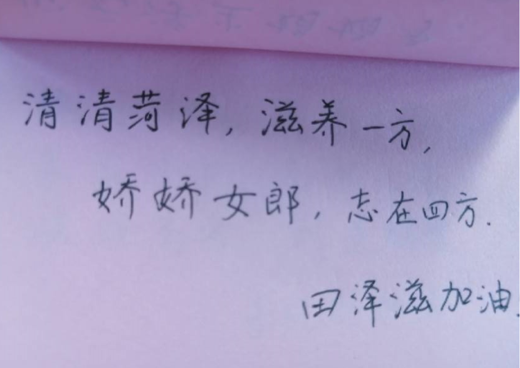 “清清菏泽,滋养一方。娇娇女郎,志在四方。——田泽滋加油”