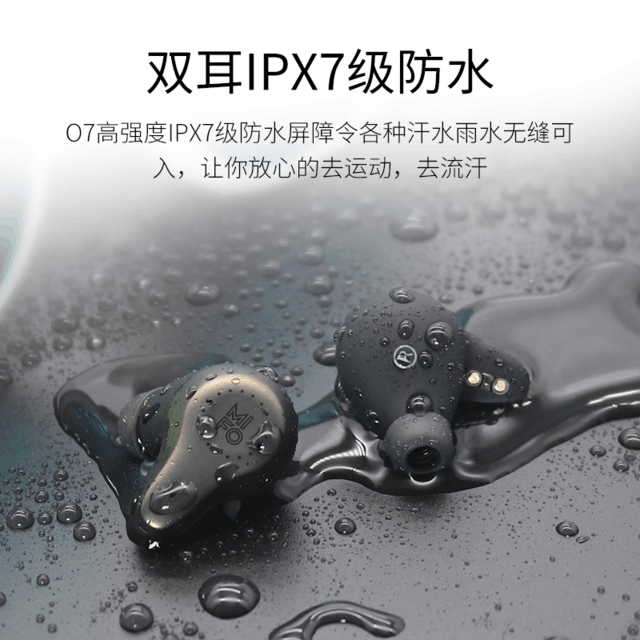 mifo魔浪O7耳机本体外观非常小,作为运动耳机产品,O7采用斜入耳式三点支撑结构,相较其他运动耳机的耳挂设计、外挂鲨鱼鳍等来说相对保守,不过在跑步、跳绳、自行车摇车等场景同样做到佩戴稳固不掉;防水设计等级认证达到IPX7级,可以做到在一米深的水中放30分钟不进水,就算是在闷热地区运动也不需要担心进水问题,值得注意的是mifo魔浪O7单耳4.5g的重量做到了7小时续航,配合充电舱达到28小时续航,当得上精致形容。