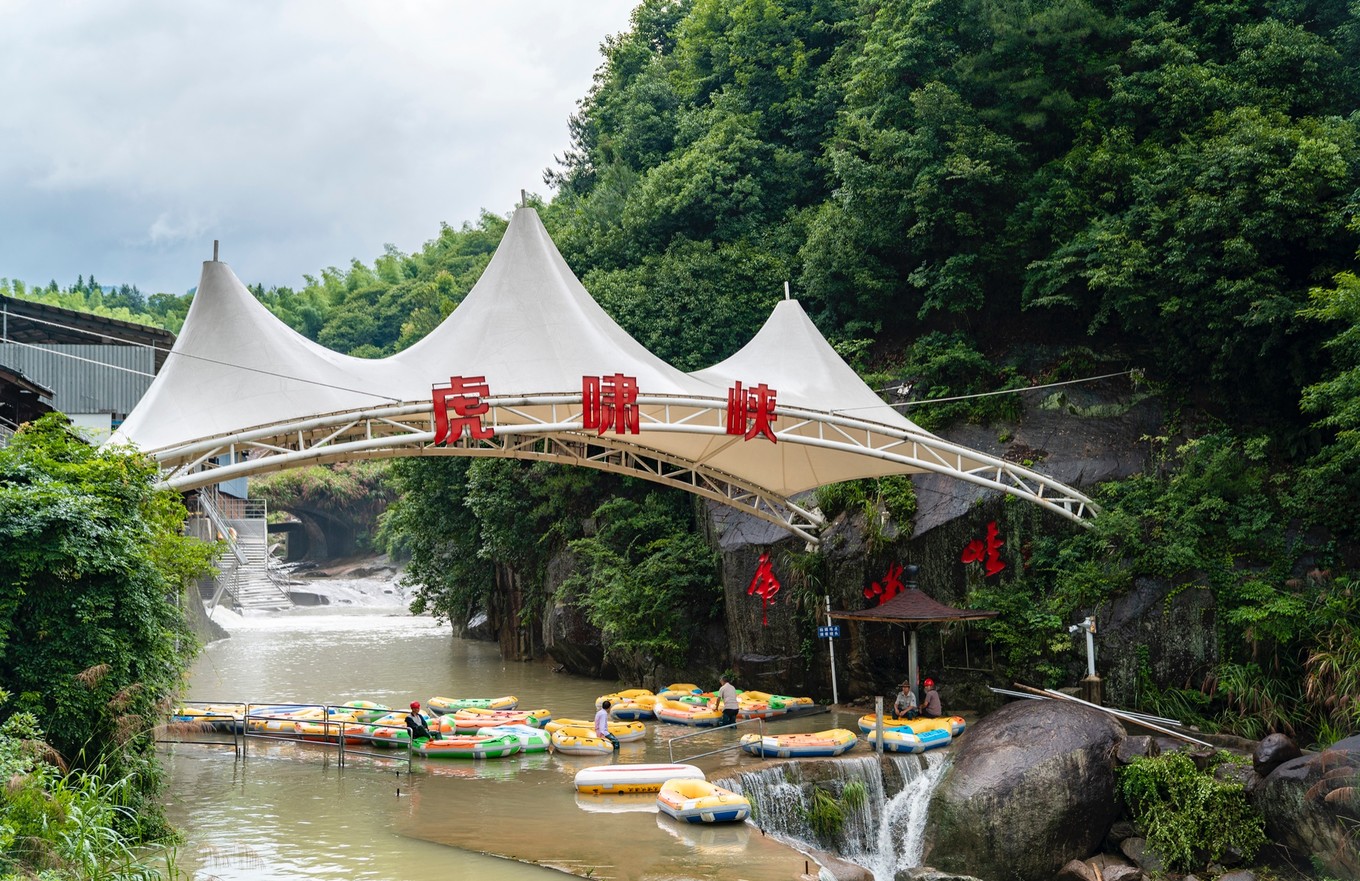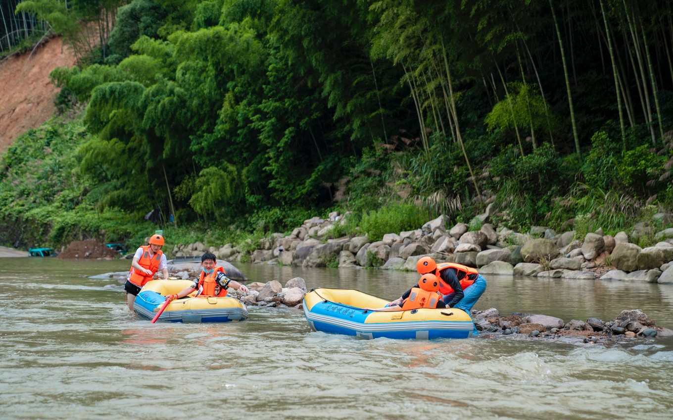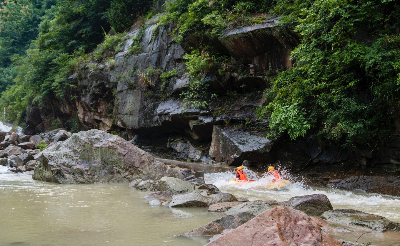 桐庐 作为华东地区漂流胜地,有着先天优越的自然条件,而虎啸峡漂流拥有如此大的水量,也是得益于上游的水库工程,有着百万方的库容水量,满足顶级漂流运动的条件需求。漂流全程穿梭在青山绿水间, 桐庐 的美丽风景也在漂流途中尽收眼底。