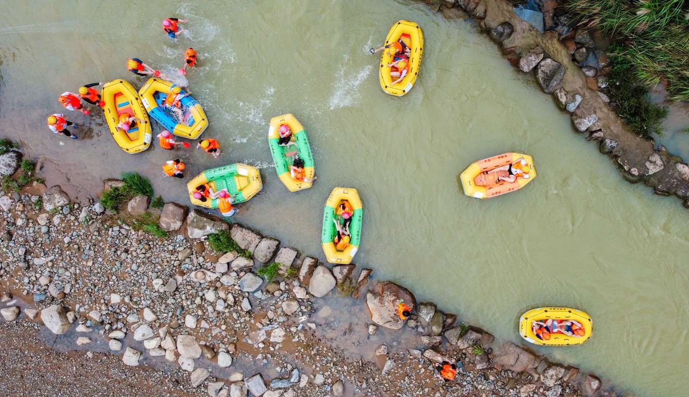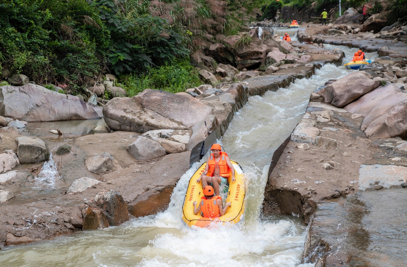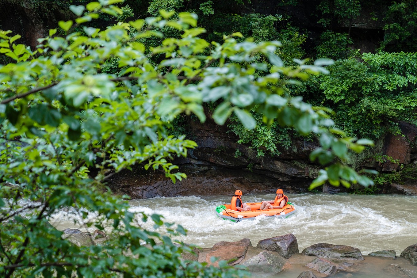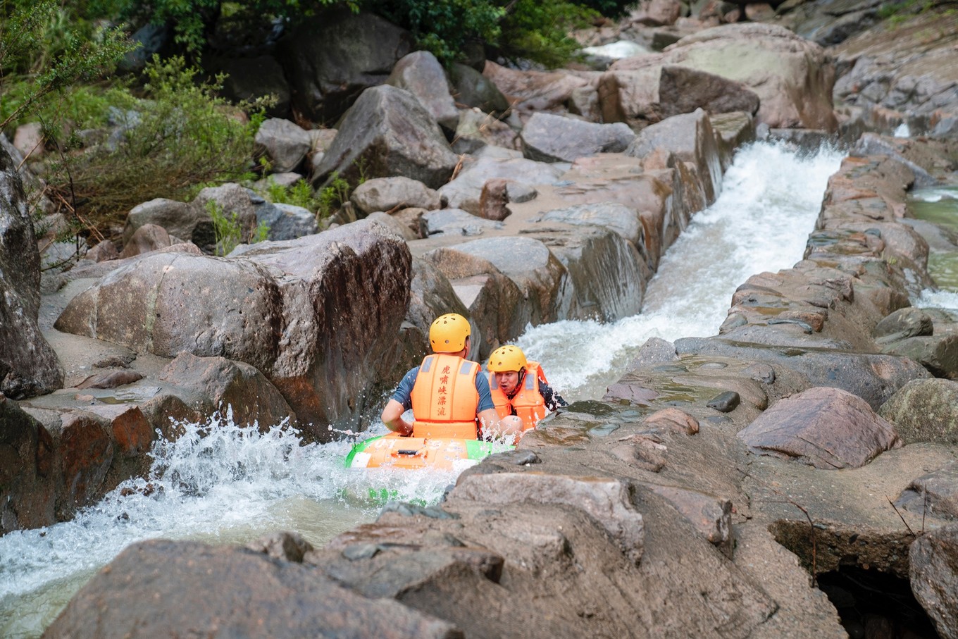 桐庐 作为华东地区漂流胜地,有着先天优越的自然条件,而虎啸峡漂流拥有如此大的水量,也是得益于上游的水库工程,有着百万方的库容水量,满足顶级漂流运动的条件需求。漂流全程穿梭在青山绿水间, 桐庐 的美丽风景也在漂流途中尽收眼底。