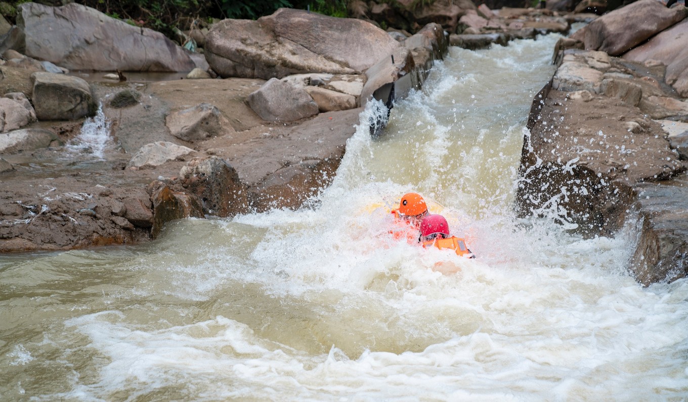 虎啸峡的惊险刺激在于缓流段较少,水量磅礴、落差大、溪段急,全程都是肾上腺素迸发的状态,一个半小时的漂流,一定让你值回票价。不知不觉中就已经来到了漂流的终点,在经过了众多的刺激速降和愉快的缓流泼水之后,你是不是已经放松了‘警惕’呢,在你准备休息的时候,殊不知前面还有惊喜等待着你~~~
