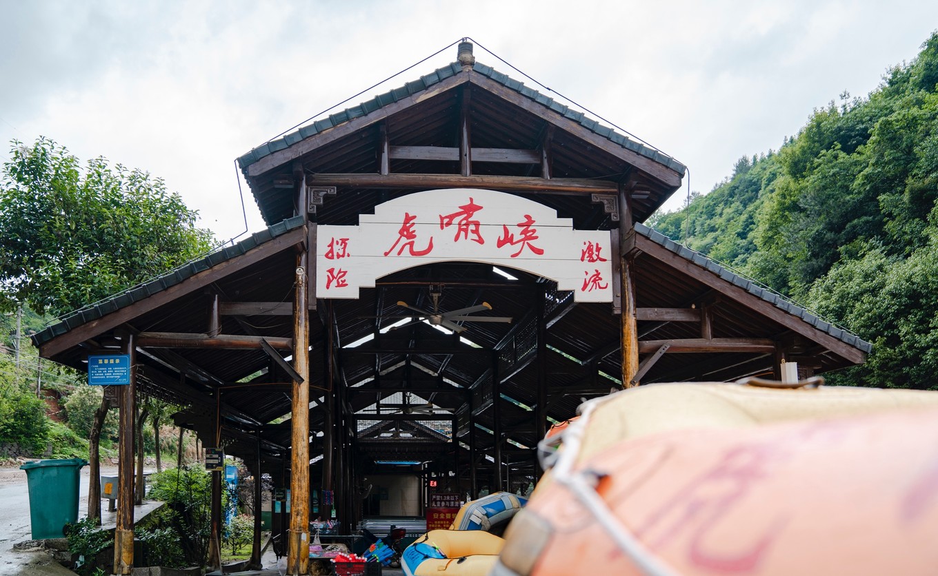 说正事,漂流该怎么玩?熟悉的朋友应该得心应手,但是没玩过的朋友可能就有点懵了,首先来漂流之前,一定记得带上泳衣泳裤或者多一套换洗的衣服,因为漂流过后全身湿透;游客中心可直接购票,票价是180元/人,网上购票是170元/人,相差倒是不多,购票之后先去换衣服,然后寄存东西,把身上的小物件都取下来,特别是女生的一些首饰,至于想带手机的话,可以买个手机防水袋,或者直接拿上GoPro,不过根据亲身体验,虎啸峡的漂流还是非常刺激的,建议连手机都不要带了,还有一点记得涂防晒、涂防晒、涂防晒;这些完事儿之后呢就可以准备去玩漂流啦,也可以去商店买水枪、水盆之类的,漂流缓慢的河道朋友间可以泼水玩耍,雨衣就不建议购买了,因为到最后肯定都是全身湿透的,而且雨衣贴在身上不透气不舒服。