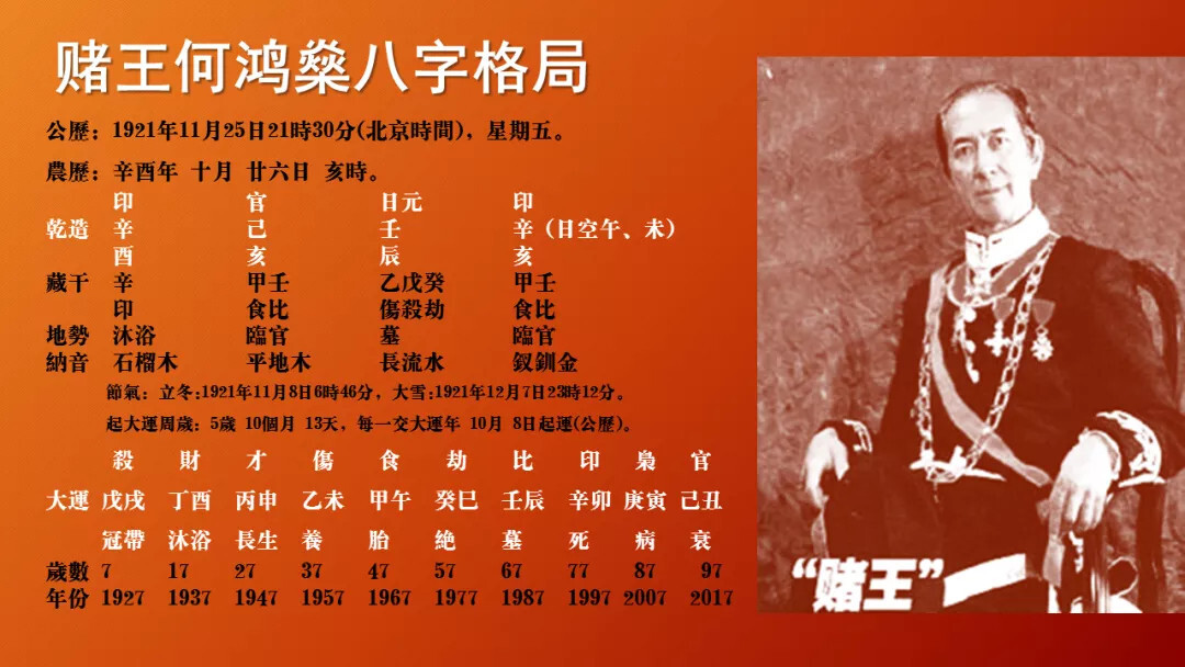 亥水比肩,双禄夹照,主赌博,股票,物流之类的,格局大,所以成为赌王。