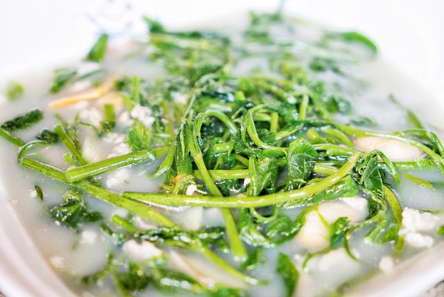 古龙野菜,用的是幼嫩的树仔苗,上汤煮成,清绿滑嫩。树仔苗,也有人称它为泰国枸杞、越南菜、五指山野菜、天绿香等等,可以清凉去火,很适合夏天享用。