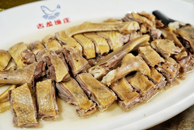 譬如这一道让人馋得流口水的古龙烧鸡,皮色金黄,肉里有汁,香气四溢。