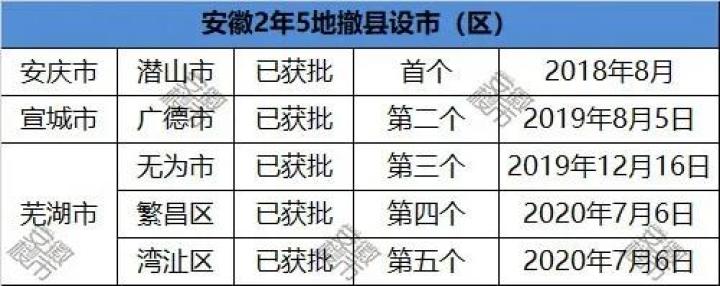自此,安徽迎来无为市、潜山市、广德市、繁昌区、湾沚区,区域行政格局有变。