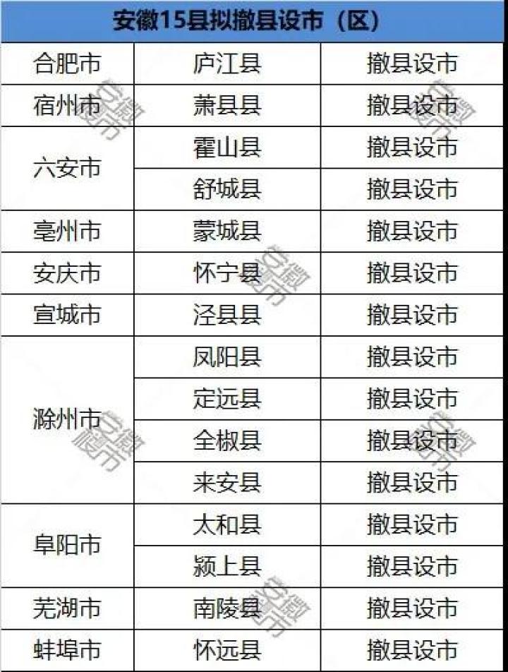 2、安徽15个县撤县设市(区)最新进展