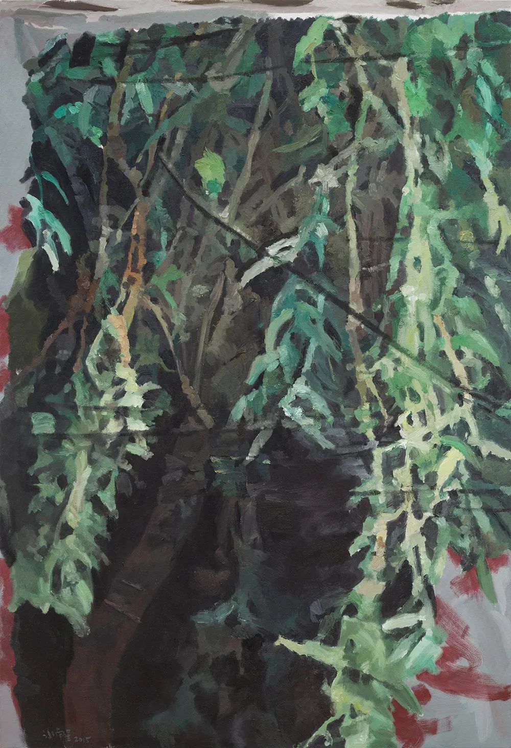 “明信片”系列(2015年)则进一步将其和美协的风景写生计划进行关联并对这种形式主义、对风景的角色认定,任务的放弃和掩盖,沮丧的结局和一无所获进行情节式的探索。这个系列中艺术家对“画布渗透”技法——关于绘画渗透以及剩余物作为绘画的痕迹和最小单位,在视觉观看的游戏里对于信息缺损的想象对绘画的“污渍”理论的启示展开的复杂多向的研究。