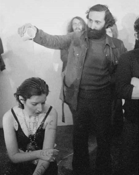 在这场行为艺术开始后,她给自己打了6个小时的麻醉药,然后摆上了十几件道具,最初观众还都处于观望状态,但当第一个跃跃欲试的人走上前,剪掉玛丽娜衣服后,更多的人参与了进来,无论是在她脸上写字,还是拿水泼在她身上,亦或是用剪刀划破她的皮肤,这些行为无一不让人们看到了人性中丑恶的一面。
