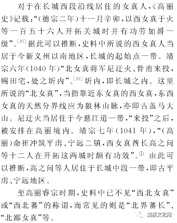 对于在长城西段沿线居住的女真人