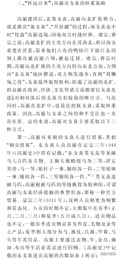 三、怀远以来,高丽对女真的怀柔的策略