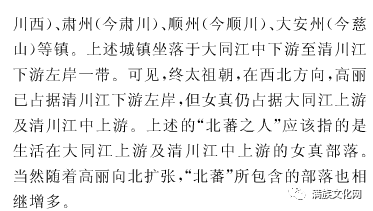 上述史料可以佐证,在高句丽领土内,特别是在长白山及其南脉东西一带,分布着众多的 靺 鞨部落,故《新唐书·高丽传》称:“有马訾水,出靺鞨之白山,色若鸭头,号鸭渌水”。