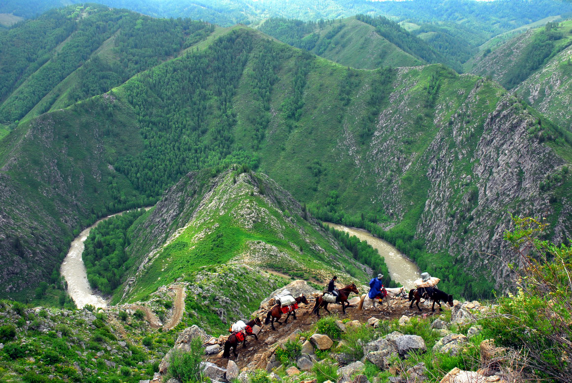 2020年6月21-23日,新疆阿勒泰地区行署副专员赛力克.哈布肯带领相关专家和技术人员一行十人,进入阿勒泰山脉,沿着喀纳斯东线的“阿禾公路”的走向,跨上马背,开展了为期三天的“黄金马道”踏勘。