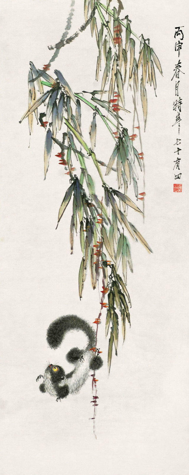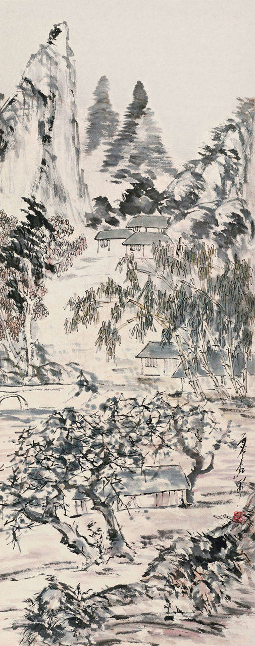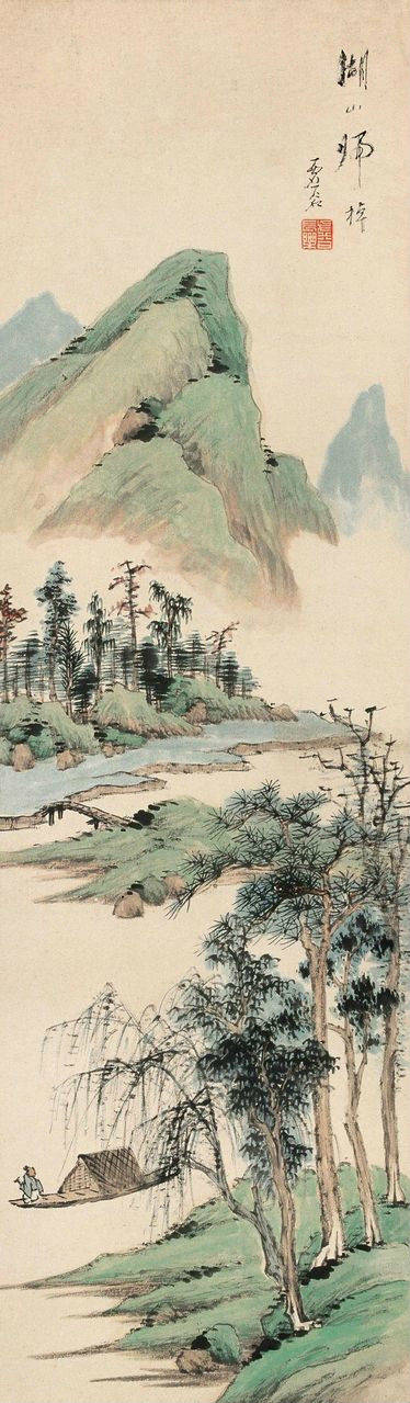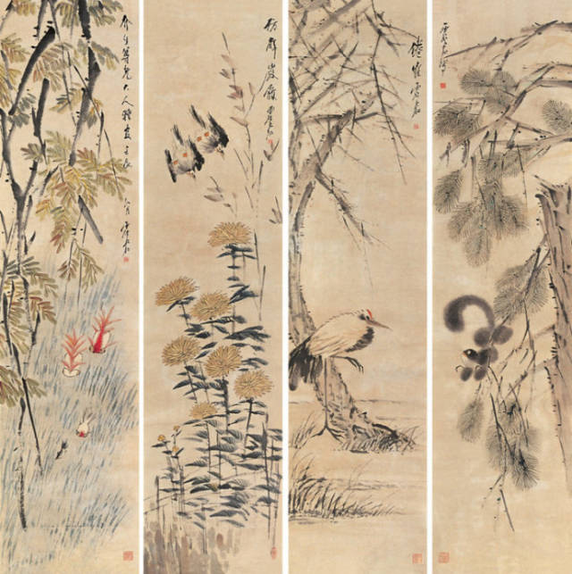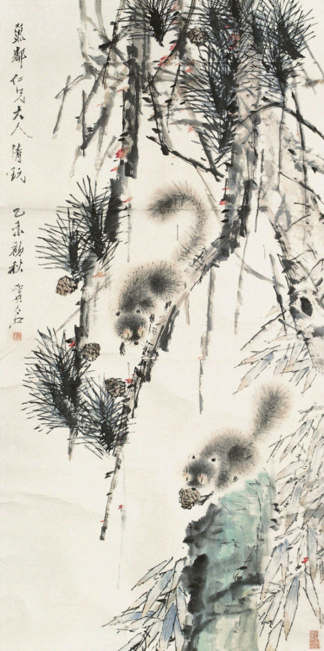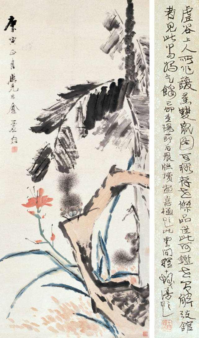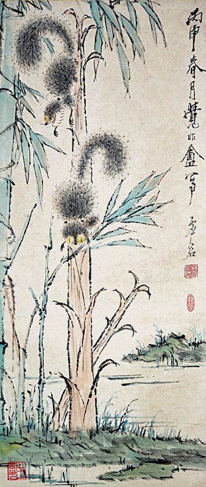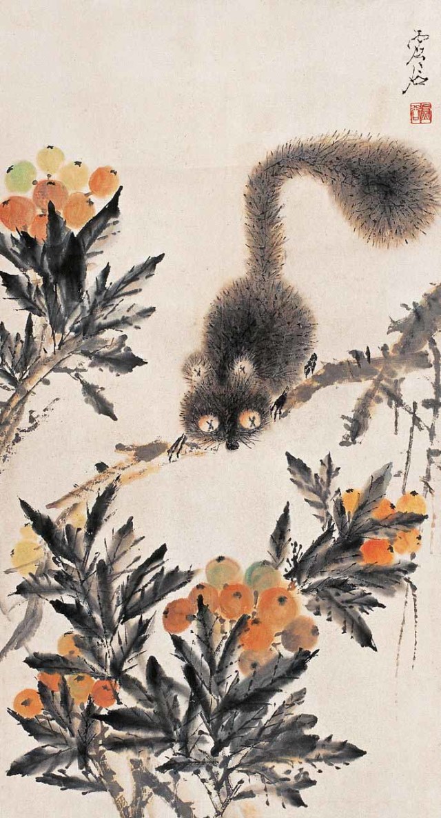 山水画在元代已达到美境且将笔墨推上了巅峰。但是,正是因为程式完备后的不易突破,山水画自清代中叶逐步式微而写意花鸟盛行。但“海上画派”画家的生存能力是有目共睹的,晚清山水画很多都出写意花鸟画家之手,如花卉大家吴昌硕。然而也有特例,能将写意花鸟笔墨和山水情调于一纸者——那就是虚谷。凡题材一经虚谷画出,便牢牢地打上了虚谷的印记。如金鱼、松鼠、如猫、仙鹤。