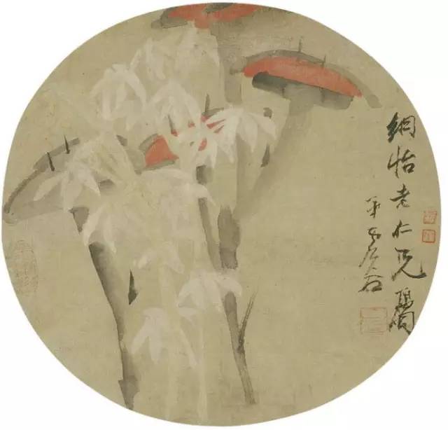 虚谷之印章,伪仿者亦不少。如“三十七峰草堂”朱文椭圆印,上海博物馆编(中国书画家印鉴)中一枚为真,而王季迁先生合编的(明清画家印监)中一枚为伪仿。两者比较可见徐三庚篆印流畅婉丽,“三十七峰草堂”之排局装饰甚为自然,“七”字之转盼尤美。此不可不辨。此印伪仿者仍有数例。另外“心月同光”、“耿耿其心”、“虚谷长乐”、“舄”字诸印,都有伪仿,多看真迹,自可比较。另外虚谷之连珠名印,本用於扇页团扇,其实虚谷之画摺扇应不多。而且多系晚年偶为戏笔,因此其中蹊径,也须留意。虚谷在上海,交往最密的是高邕之、任伯年、胡公寿三人。胡公寿在戊寅冬仲(一八七八年)曾赠虚谷“竹石图扇”(上海博物馆藏),而任伯年在一八九一年(辛卯)也有“柳燕图扇”赠虚谷,并称“虚谷道兄我师”,翌年虚谷又将此扇转赠给九华堂主朱锦裳。而虚谷分赠三人的,或为写照、或山水、或题跋,都是大幅、写卷或册页,末见有赠画扇之记闻。由此似觉虚谷於扇页并不甚热心有趣。当然,他不作则已,如写扇页,则也笔墨不凡,尝见虚谷一八八八年为章敬夫所写之金笺扇页“梅竹双鹤图”,双鹤为顶天立地,直扑人眼,笔墨设色,沉著高华,为之难忘。