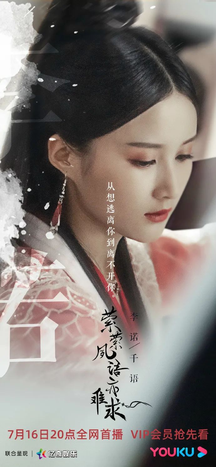 李诺饰演女主千语,千蕴山庄收养的弃婴,实则是个千金大小姐。是个聪慧过人、鬼马机灵的小侍女,慕绝尘的得力助手。预告中慕绝尘对女主千语各种欺负,女主可谓惨戚戚,但后来女主霸气反套路,两人争锋相对却也很甜啦。
