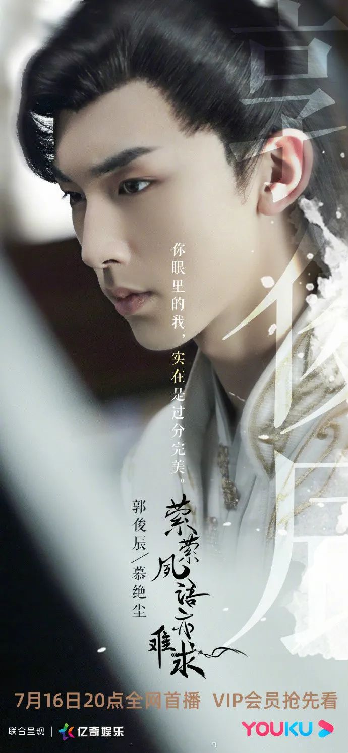 郭俊辰饰演男主慕绝尘,千蕴山庄少庄主,拥有侠义心肠,更是人中翘楚,在他的努力下江湖一片和气,他因此成为百姓心中的英雄。从曝出的预告看,郭俊辰古装俊美非凡,却也尽显傲娇自恋,与女主上演各种互怼式恋爱,有点甜。