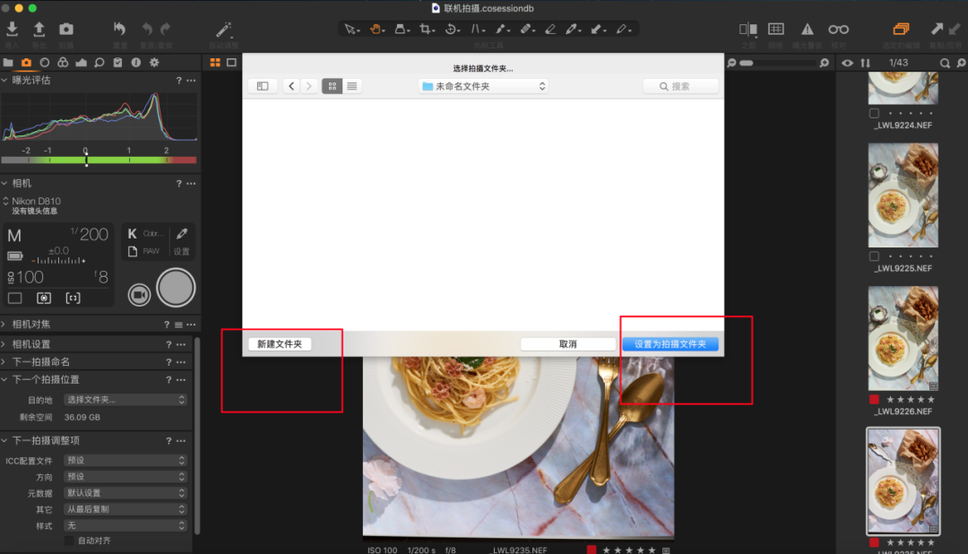 这里可以根据自己的需要设置拍摄的文件夹,也可以新建文件夹,确定好之后点击设置为拍摄文件夹,接下来就可以开始联机拍摄了!如图4所示。