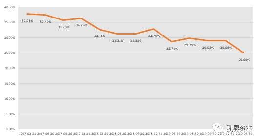 与单季度营收增速下滑相对应的是毛利率的单季度持续下滑,从2017Q1的37.76%持续下滑至目前的25.09%(2020Q1)。我们不禁要问,毛利率下滑趋势是否还将持续?持续多久?底在哪里?
