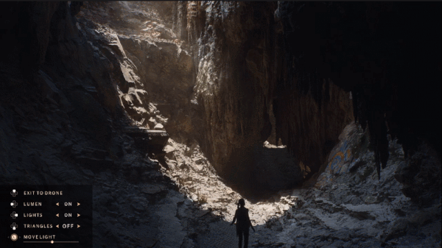 Lumen 系统对移动中的光源做出反应,还能适应几何体变化。