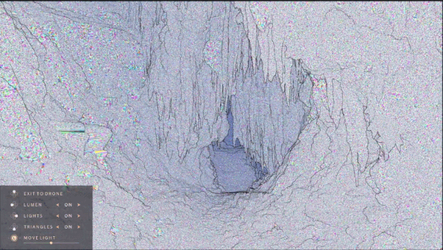 每一帧里的原始几何体三角面都超过 10 亿,而 Nanite 能够进行快速渲染,将其无损压缩为 2000 万个绘制三角面。上图展示了颜色各异的三角形。