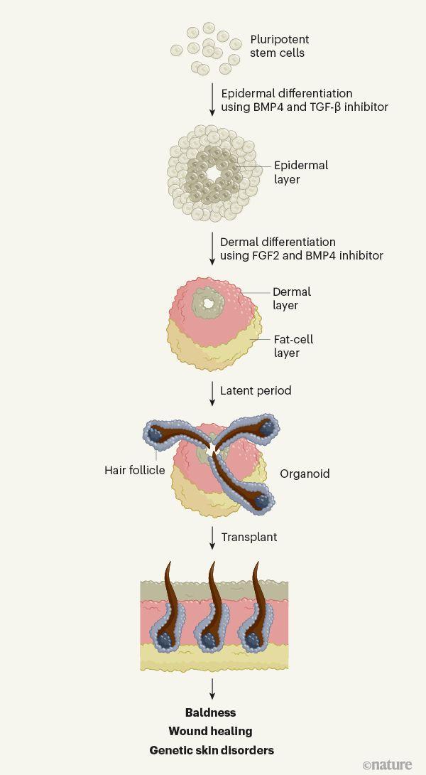 不久前,学术期刊《自然》发表重磅论文,介绍人造皮肤领域的新突破——美国哈佛医学院耳鼻喉科助理教授卡尔·科勒,以及研究助理李智运(音译)等人报告,他们在仔细优化类器官培养系统生长条件后,利用人类诱导多能干细胞,培养出能生长毛发的皮肤类器官。