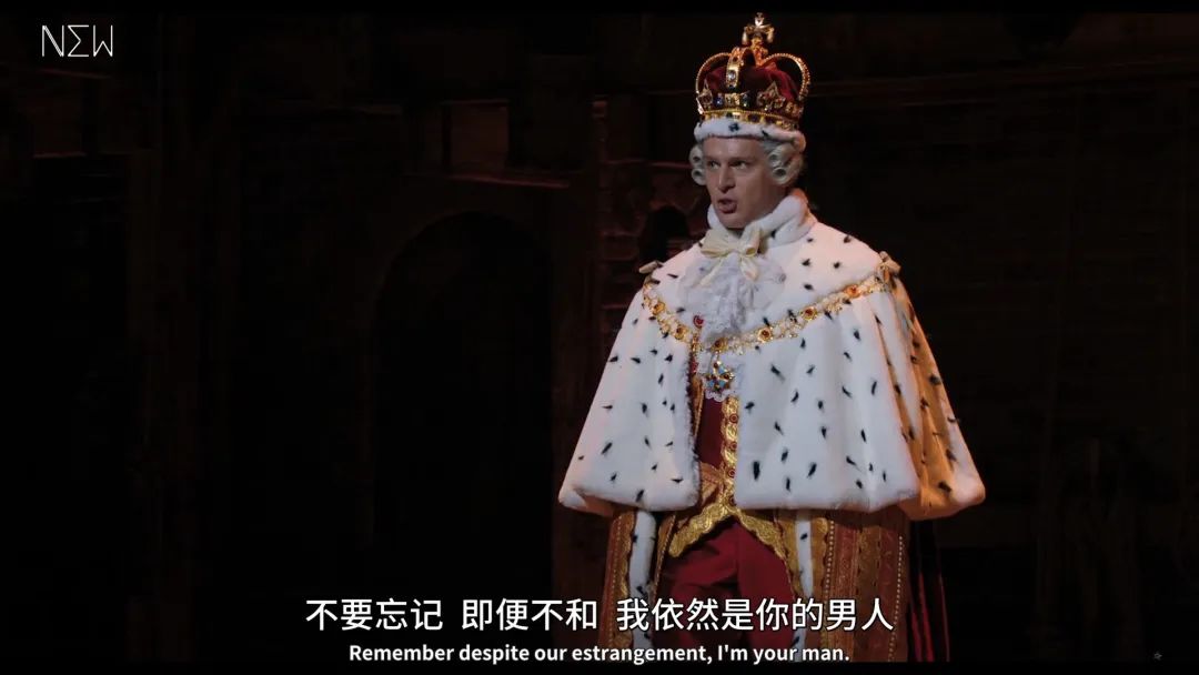 于是我们看到了汉密尔顿在初建国时的踌躇满志,被表现为他动情地承诺要把一个新的世界献给自己刚出生的孩子;看到了英美之间的局势变动,成为了英王乔治三世阴阳怪气地写给美国的一封封分手信。