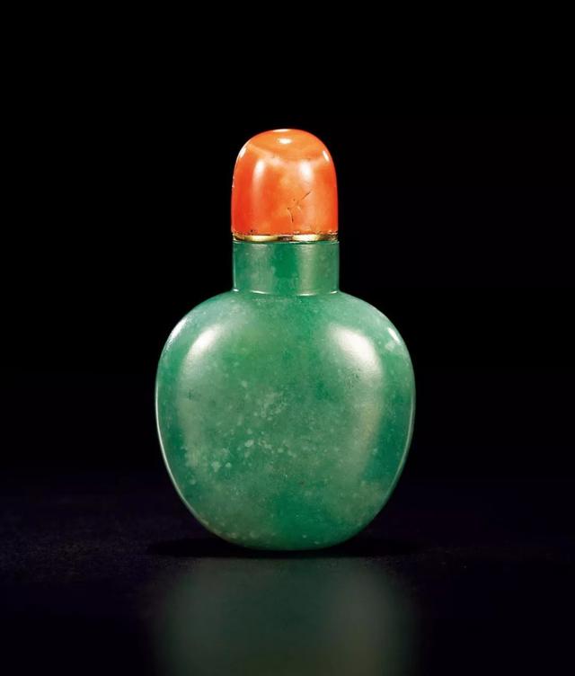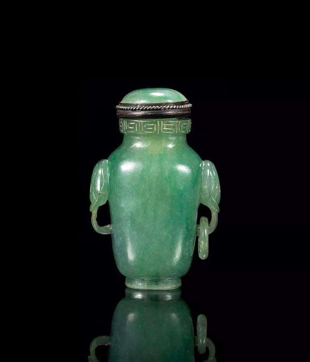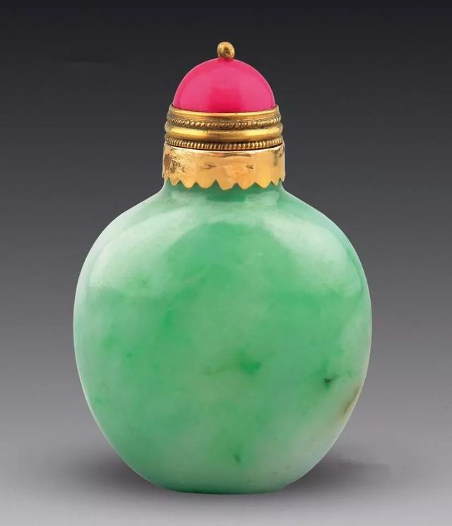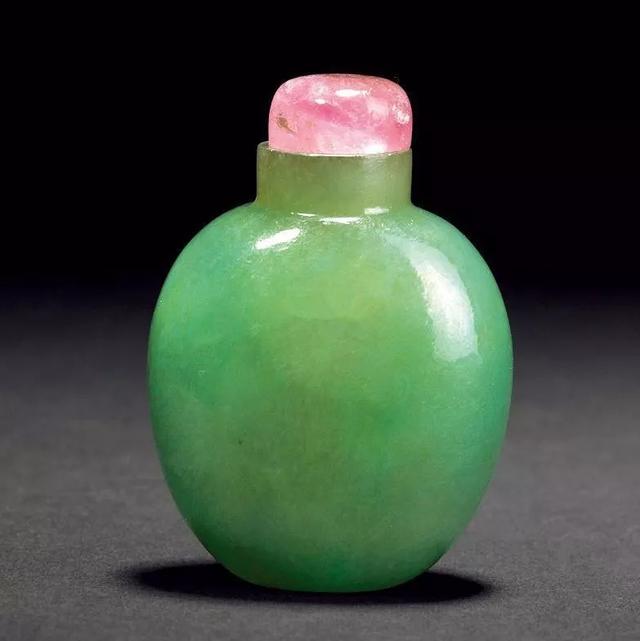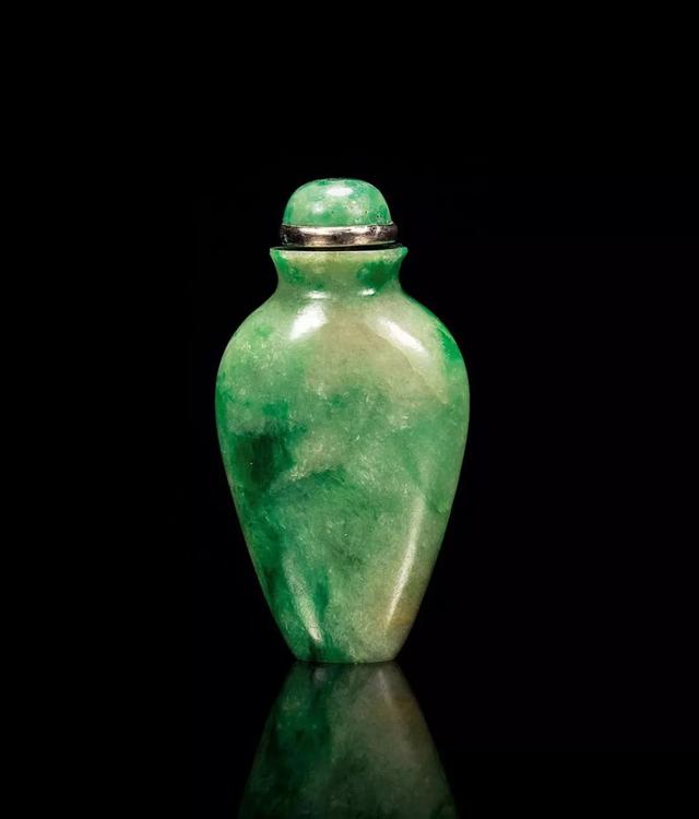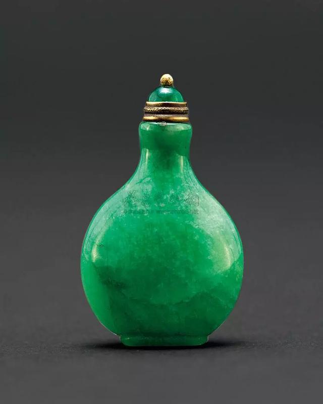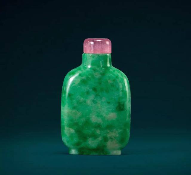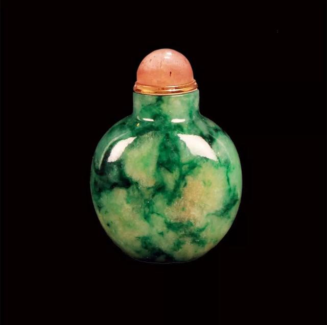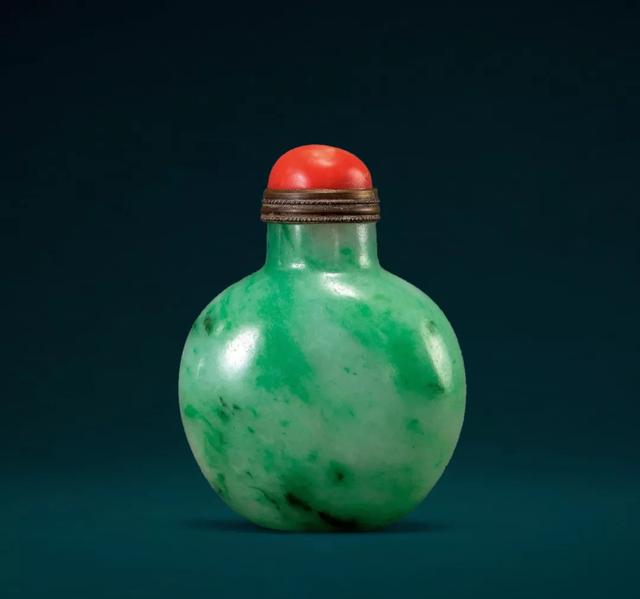 说起鼻烟壶,这里给大家做一个简单的科普,它是用以盛放鼻烟的容器,小可手握,便于携带。明末清初,鼻烟传入中国,鼻烟盒也渐渐东方化,就产生了许多精美鼻烟壶。尤其在清中后期,大量翡翠传入中国,因此翡翠鼻烟壶更是作为身份和权贵的象征,被王宫大臣们争相使用。