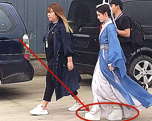 而她吼吼的鞋底则是观众关注的焦点,鞋底很厚,看着都累。