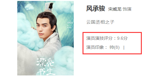男主宋威龙,8人觉得很帅,演技也获得了9.6分。