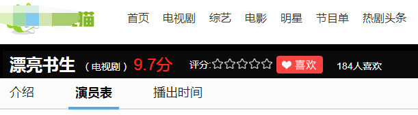 在某影视网站上,该剧的评分居然高达9.7分,虽然仅仅184人表示喜欢。