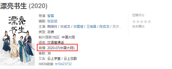 《漂亮书生》预告片曝光,鞠婧祎宋威龙演技9.6.毕雯珺演技10分