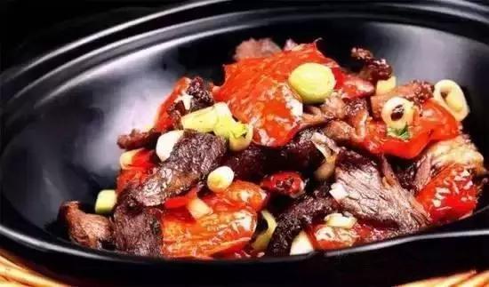 3、锅入油烧热,下蒜片和姜片爆香后,放入大红椒块翻炒至外皮起泡时,下入雪花牛肉并淋入李锦记小炒汁,调入鸡精和味精,炒香后即可装进烧热的砂锅里上桌。