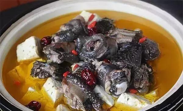出菜时,把炖乌鸡舀锅里烧沸,下入菜豆腐同煮20分钟,其间放盐调好味,起锅装砂煲里,配青椒味碟和家常豆瓣味碟一起上桌。