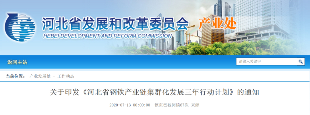 为稳步提高钢铁产业链供应链的稳定性和竞争力,加快壮大市场前景好、科技含量高、产品关联程度强的产业链集群,全面推动钢铁强省建设。7月13日,河北省发改委印发《河北省钢铁产业链集群化发展三年行动计划》(以下简称“《计划》”)。