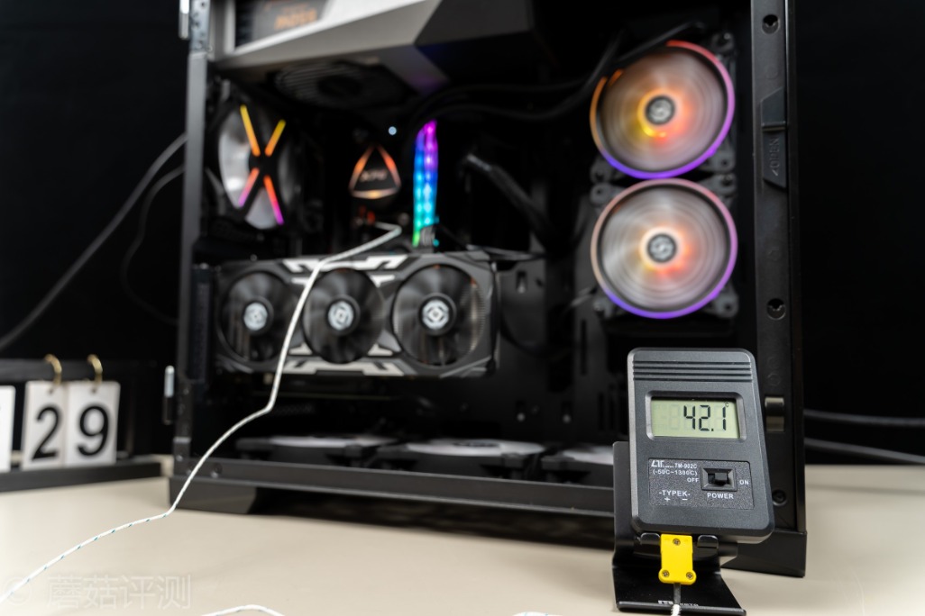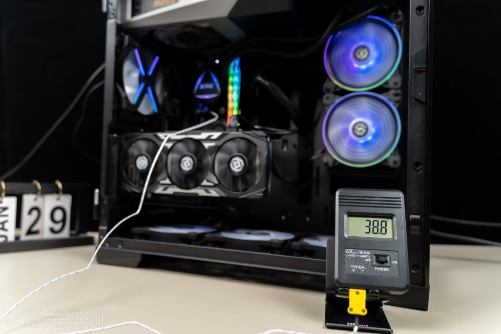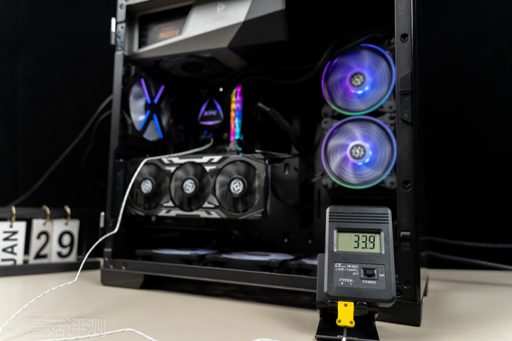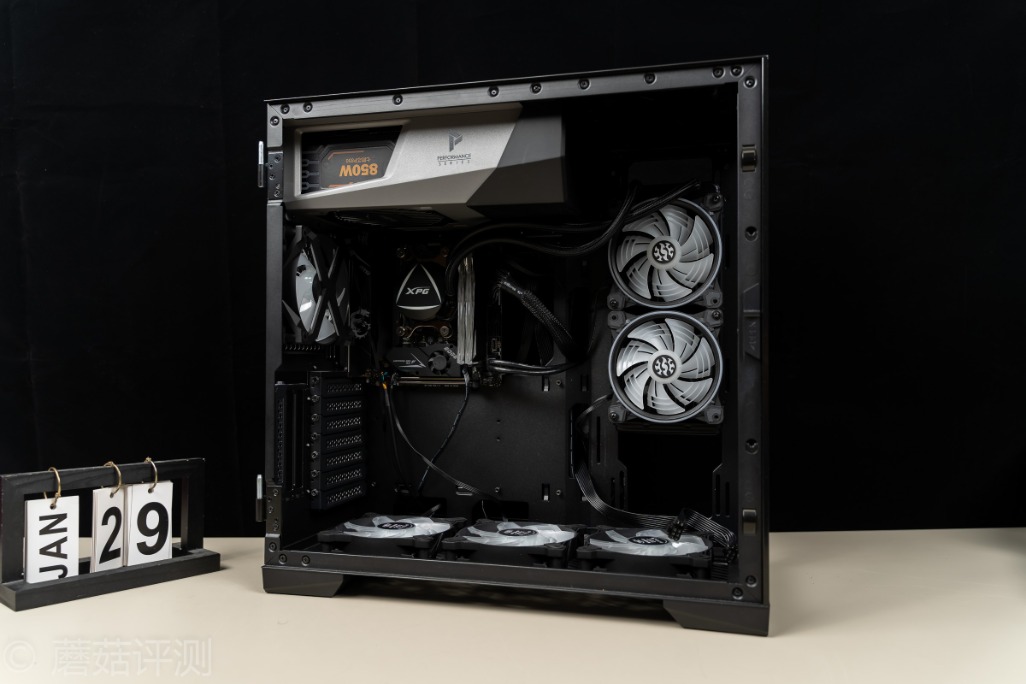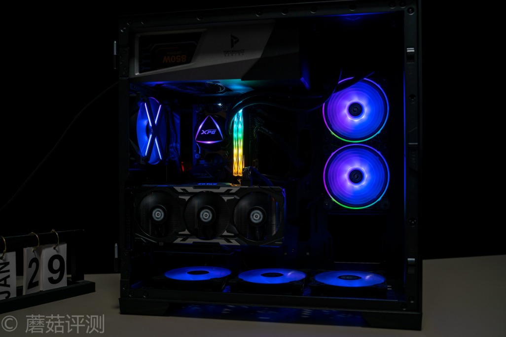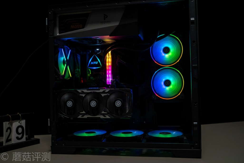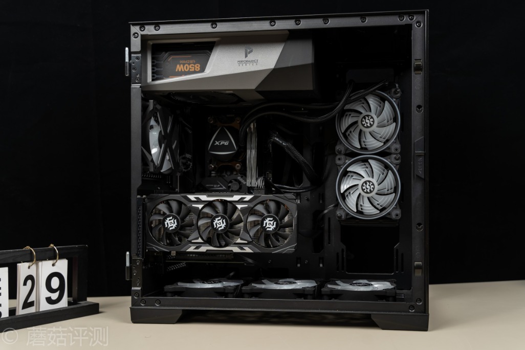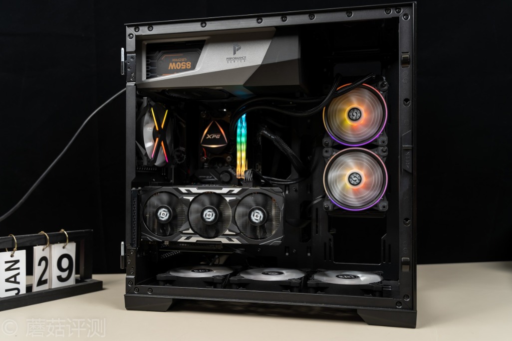 ▼安钛克冰钻P120机箱支持竖装显卡,这里直接将显卡竖装,整体的效果还是挺漂亮的