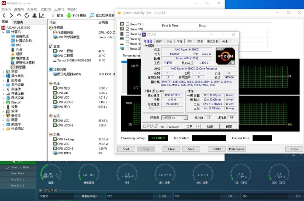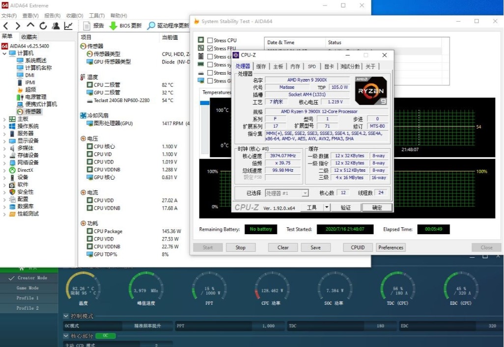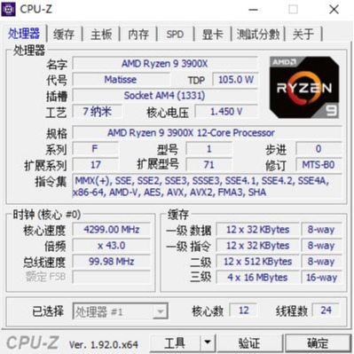 ▼先来看看处理器,AMD的3900X,12核心24线程,三级缓存64MB,这是一颗性能怪兽