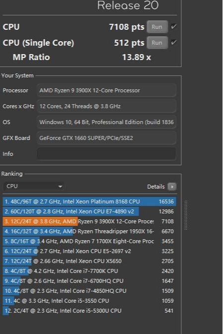 ▼R20测试,单核512、多核7108,多核分数超过7K,给力!