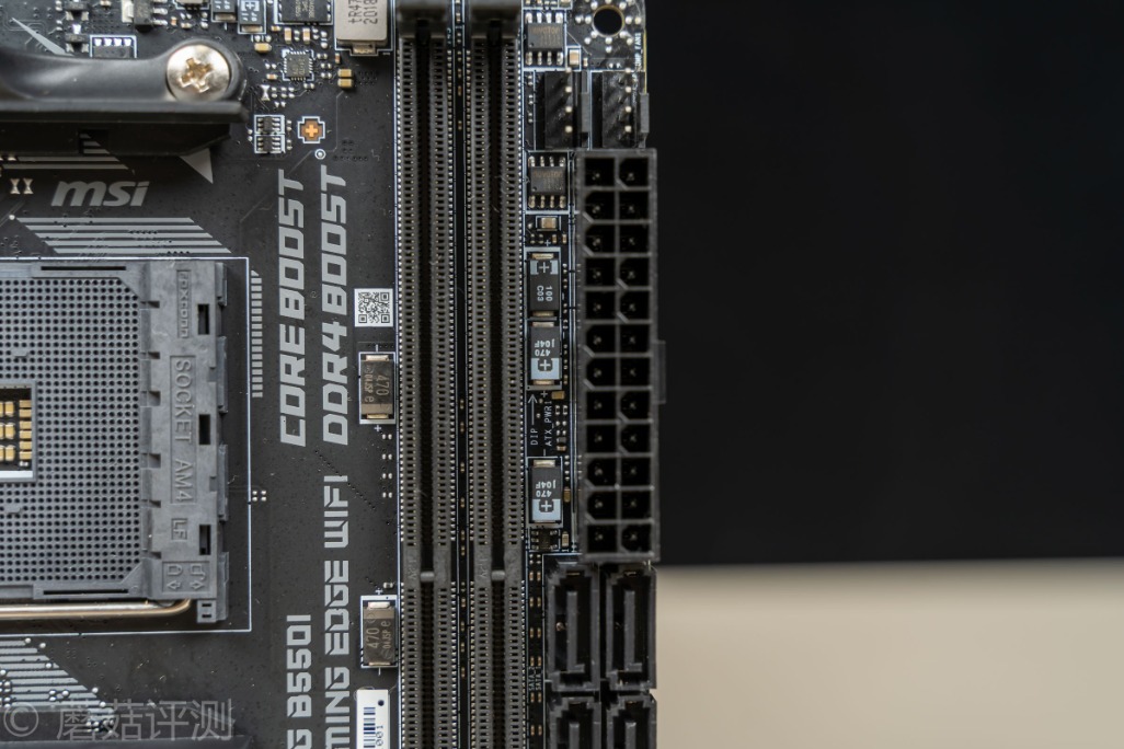 ▼右侧是两条内存插槽,感觉这块B550I又是一块超内存的好板子