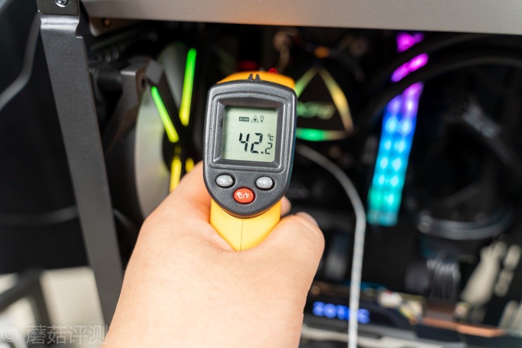 ▼蘑菇不是太相信,找了个红外测温枪测了下,测试点就是42.2℃,很低
