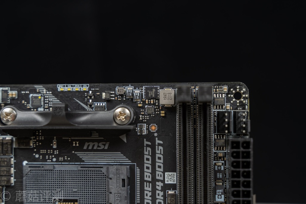 ▼主板的左下角还有一颗供电Mos,4C024,用料夸张,需要供电的地方,直接搞一颗Mos放过去,供电能力又强、效果又好