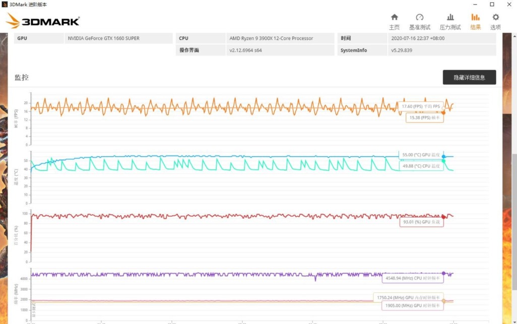 ▼接着是Fire Strike Ultra的压力测试,帧数稳定率在97.5%